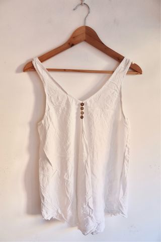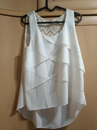 - Blusa de tirantes anchos - Pequeñas capas en el pecho y espalda - Material: 100% Poliester - Marca: Corazón - Talla: XL - Medidas: Ancho de sisa: 56 cm Largo de prenda: 65 cm