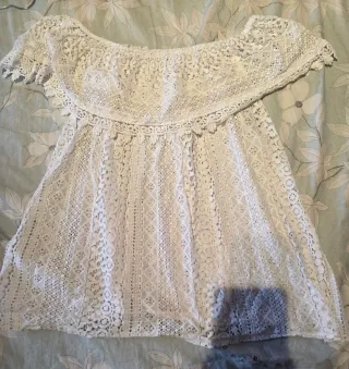 Bonita blusa de encaje, perfecta para llevar sobre el bañador. - Diseño de hombros descubiertos. - Tejido de encaje calado. - Detalle de volantes en el escote y mangas.
