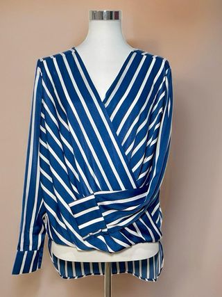 Blusa cruzada GUESS a rayas azul y blanco | S