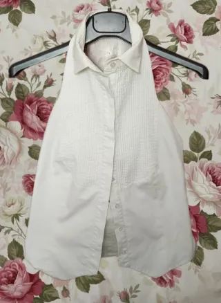 Elegante blusa blanca sin mangas, perfecta para combinar. - Diseño con cuello camisero. - Cierre de botones al frente. - Corte halter.
