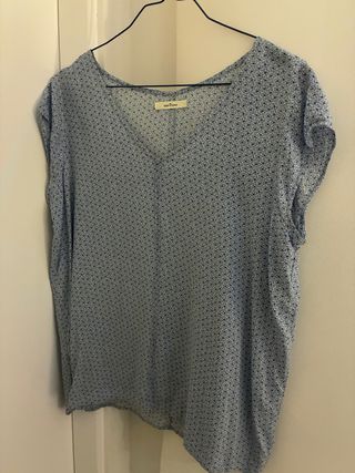 Blusa de manga corta con un bonito estampado floral en tonos azules y blancos. El diseño es ligero y fluido, ideal para el día a día. - Cuello en V. - Estampado floral. - Manga corta.