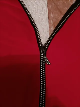 Blusa de manga japonesa confeccionada en licra. - Diseño con cremallera frontal. - Detalle de pedrería en el cuello y la cremallera.