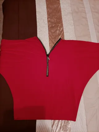 Blusa elegante de color rojo. - Diseño con botones decorativos en las mangas. - Corte moderno y favorecedor.