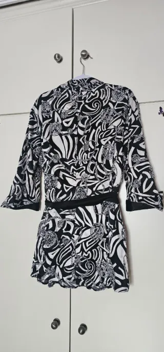 Elegante blusa con un llamativo estampado. - Diseño con cinturón. - Mangas 3/4. - Cuello camisero.