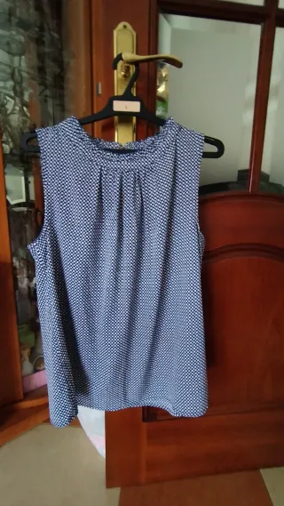 Blusa gasa lunares azul y blanco talla 50