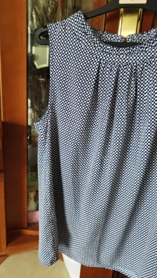 Blusa sin mangas con un bonito estampado. - Diseño con cuello redondo y fruncido. - Estampado de pequeños cuadros en azul y blanco.