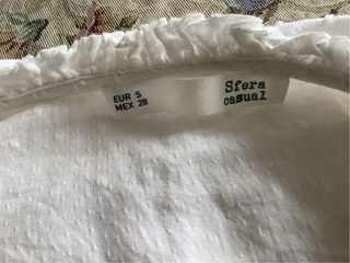 Blusa blanca de Mango con un diseño elegante y fresco. Pone talla xs pero en realidad es s/m - Mangas largas abullonadas. - Cuello redondo con detalle. - Cierre de botón en la parte delantera.