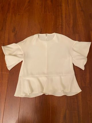 Elegante blusa blanca con detalles de volantes en las mangas. Nueva, con etiqueta. - Detalle cut-out en escote clave. - Tejido ligero y con textura. Muchas prendas en mi perfil!!
