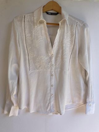 Blusa blanca de Zara con un bonito bordado floral. Usada en un par de ocasiones. - Diseño con mangas acampanadas. - Bordado de flores en contraste.
