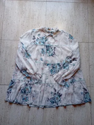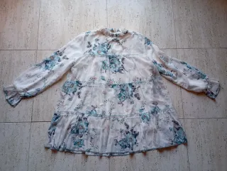 Camisa vaporosa con un bonito estampado floral. - Diseño con volantes. - Cierre de cordones en el escote. - Mangas largas acampanadas.