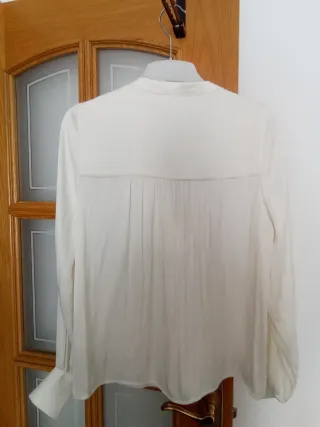 Blusa blanca con un bonito detalle en la parte delantera. Es una prenda elegante y versátil. Marca talla 48 pero es el tallaje es más pequeño talla 44 - Detalle frontal con botones. - Manga larga.