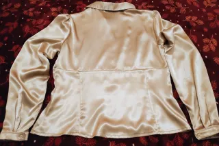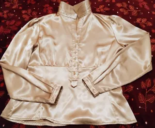 Elegante blusa de manga larga con un acabado satinado. - Cuello camisero. - Cierre de botones. - Corte cropped.