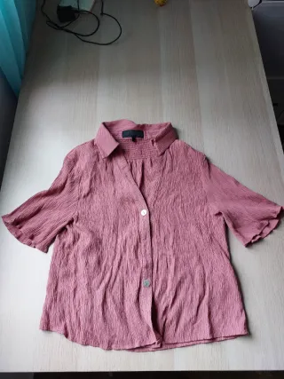 Elegante blusa morada, ideal para eventos especiales como ceremonias, fiestas o comuniones. Su diseño versátil la hace perfecta para ocasiones formales. - Corte moderno. - Manga tres cuartos. - Detalle en la parte inferior. Color 💜 morado Tela que no se arruga tipo crepé Perfecto estado Se ha usado para una comunion