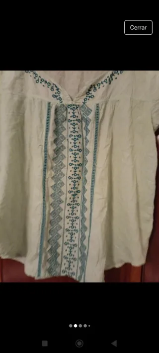 Blusa blanca con un bonito bordado floral en la parte superior. El diseño combina flores negras y rojas con detalles de hojas y tallos en azul. - Bordado floral detallado. - Diseño de manga corta. - Cuello redondo.
