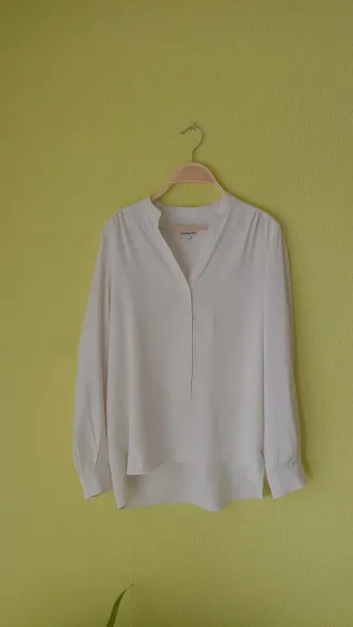 Elegante blusa de la marca COS en color beige. Presenta un diseño con lazada que añade un toque especial. Se puede anudar en la parte delantera o trasera ( según se prefiera). - Manga larga francesa. - Corte holgado. - Detalle de lazada ancha. - Prenda combinable , con forro interior que hace que siente bien. - Muy chic para ir a la oficina , fiesta o eventos.