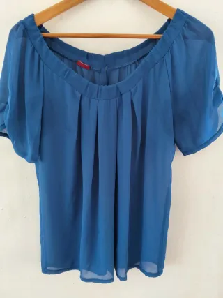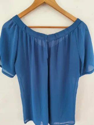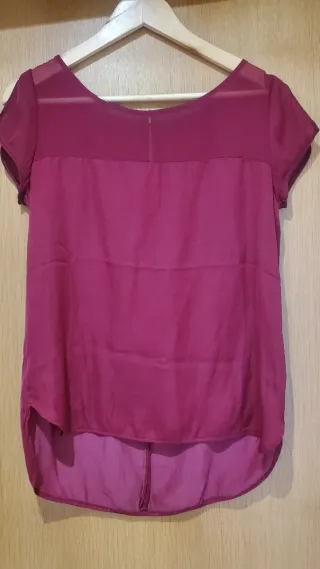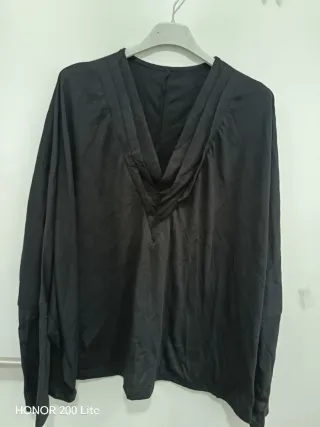 Blusa elegante con mangas estilo murciélago. - Tejido ligero y con textura. - Diseño de media manga - Corte holgado. Lleva top interior y no transparenta. En perfecto estado. Fotos con medidas