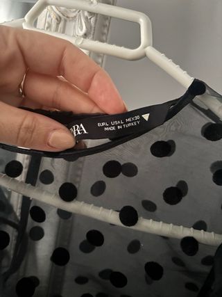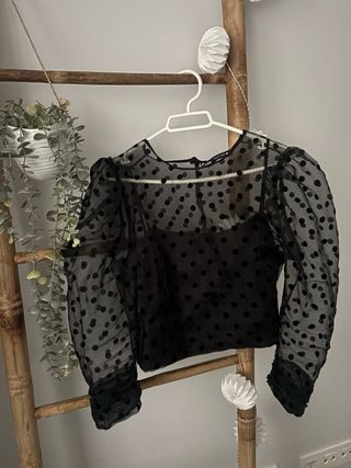 Elegante blusa de Zara con un diseño de lunares. - Mangas abullonadas. - Tejido semitransparente. - Corte moderno.