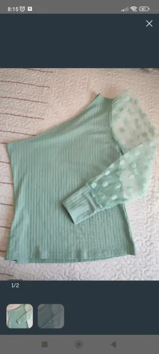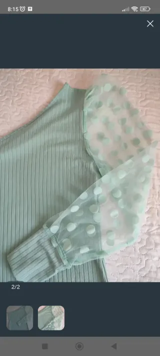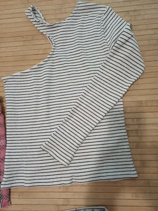 Blusa de Shein con un diseño moderno y elegante. - De 1 manga larga con detalle de lunares. - Corte asimétrico. - Tejido acanalado. Talla L sirve también para M Sin uso. REBAJADA