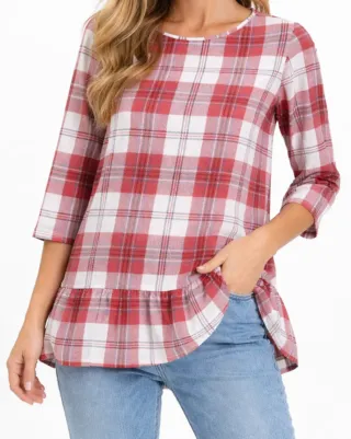 Blusa con estampado de cuadros y detalle de volante. Nueva sin etiqueta 🏷 - Diseño de tendencia. - Mangas tres cuartos. - Corte holgado.