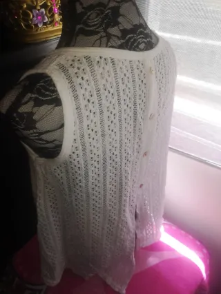 Bonita blusa sin mangas con un delicado diseño de encaje. - Tejido de encaje calado. - Diseño de cuello redondo. - Estilo sin mangas.