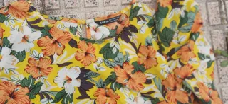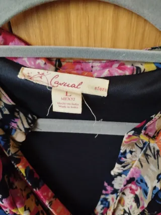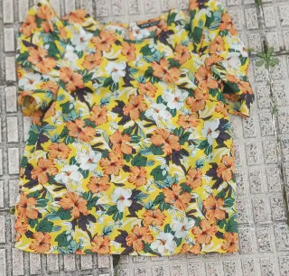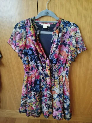 Precioso vestido o blusa con un estampado floral vibrante y alegre. Su diseño es ligero y favorecedor. - Escote en V. - Cintura elástica. - Mangas cortas.