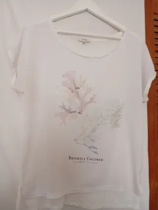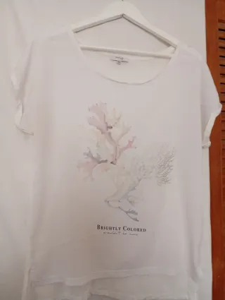 Blusa de verano con un bonito estampado de coral en tonos pastel. La tela es ligera y fresca, ideal para los días cálidos. - Diseño de manga corta. - Estampado de coral multicolor. - Cuello redondo.