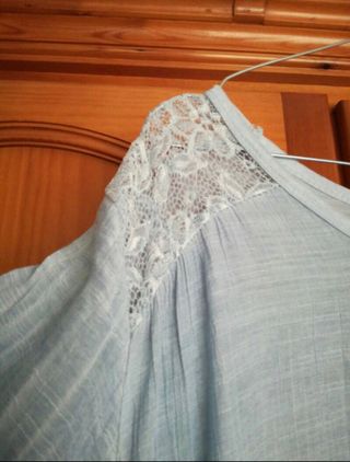 Bonita blusa en color azul cielo, manga corta, muy fresquita, talla X L