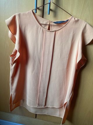 Blusa mujer manga corta. Talla M. Naranja vivo. Marca zara