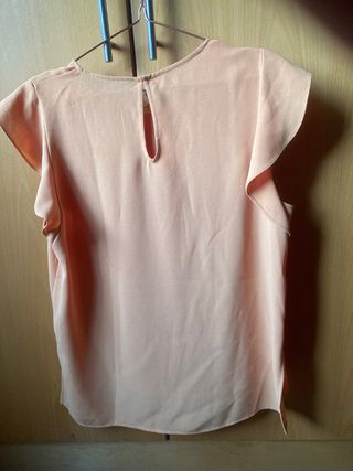 Camisa de Massimo Dutti talla 38. Muy original en tonos rosa y crema con detalles en plata. Manga farol con lorcitas y corte en el pecho también con lorcitas. Tejido de calidad. Poquísimo uso.