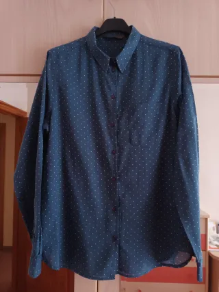 Blusa de manga larga con un bonito estampado de lunares. - Cuello camisero. - Cierre de botones. - Un bolsillo en el pecho.Tiene un d3sperfecto descolorido en la tela , pero sin importancia.
