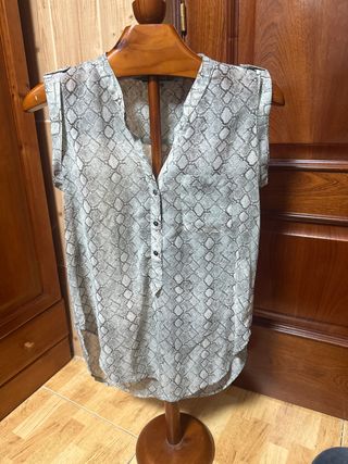 Blusa de Stradivarius con un estampado de animal print muy de actualidad ésta temporada. Manga tres cuartos y perfecto estado. Tonos grises y negros.