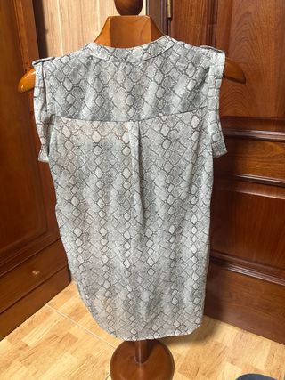 Blusa de manga larga con un llamativo estampado animal print. - Diseño con cuello camisero. - Cierre de botones en la parte frontal. - Tejido ligero y fluido ( 100 %poliamida ). NUEVA A ESTRENAR
