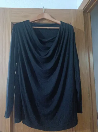 Camisa o blusa de manga larga en color negro. Talla L o XL. - Cuerpo ancho con manga tipo murciélago. - Tejido suave, elástico y cómodo. - Ideal para cualquier ocasión.