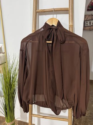 Blusa marrón con lazada en cuello