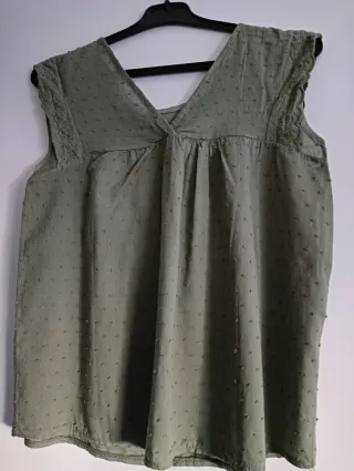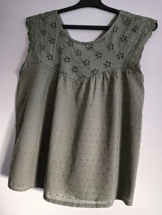 Blusa verde oliva con bordado, apenas uso