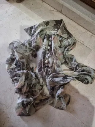 Blusa con un bonito estampado floral. Solo usada una vez, esta en muy buen estado - Cuello con volante. - Cierre de botones en la parte delantera. - Mangas largas con puños fruncidos.