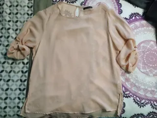 Blusa rosa palo de Primark Tiene algunas pequeñas manchitas - Tejido ligero y vaporoso. - Mangas con vuelta y botón. - Cuello redondo con abertura trasera.