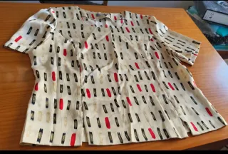 Blusa con un diseño único y llamativo. - Manga larga. - Cuello camisero. - Cierre de botones. - Estampado geométrico y abstracto.