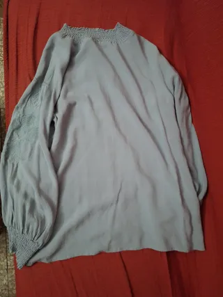 💰SOLO CON PAGO POR WALLAPOP ▶️ELEGIR ENVÍO POR INPOST. NO ENVÍO POR CORREOS!! Elige varios artículos de mi perfil, y paga sólo un envío IGUAL QUE NUEVA, SOLO PUESTA UN DÍA Blusa de manga larga en color azul celeste. Presenta un diseño en V, con botones en la parte frontal. Las mangas se pueden recoger con un botón. - Tejido ligero y fluido. - Detalle de botones en el escote. - Mangas con trabilla para poder enrollarlas.