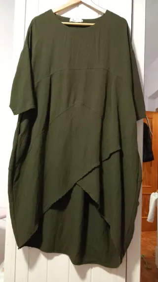 💰SOLO CON PAGO POR WALLAPOP ▶️ELEGIR ENVÍO POR INPOST. NO ENVÍO POR CORREOS!! Elige varios artículos de mi perfil, y paga sólo un envío Blusón largo de corte asimétrico y media manga. La talla está borrada pero es una XXL - Diseño con capas superpuestas. - Tejido con textura arrugada. - Cuello redondo.