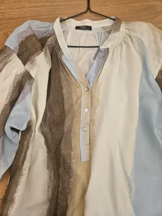 💰SOLO CON PAGO POR WALLAPOP ▶️ELEGIR ENVÍO POR INPOST. NO ENVÍO POR CORREOS!! Elige varios artículos de mi perfil, y paga sólo un envío Blusa de manga larga con un bonito estampado. - Cuello en V con cordones. - Puños elásticos. - Diseño ligero y fluido.