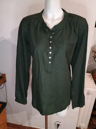 Blusa fluida de manga larga con un diseño elegante y versátil. - Cuello en V con detalle de botones. - Mangas con vuelta. - Tejido ligero y cómodo.