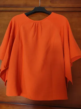 Blusa de Zara con grandes mangas. Tela con cuerpo. Color naranja oscuro. Talla M. Perfecto estado.