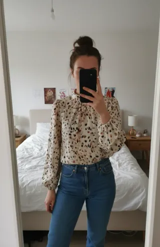 Estado: Totalmente NUEVA con etiqueta 🏷️. Diseño: Cuello alto tipo perkins y mangas abullonadas con puño elástico. Tejido: Fluido y con mucha caída, muy cómodo de llevar. Talla: M. 🚀 Mis compromisos: ENVÍO MUY RÁPIDO ⚡ (Lo tendrás contigo en un abrir y cerrar de ojos). DETALLE DE REGALO incluido en tu paquete por confiar en mí 🎁💖. ¡Dale un toque especial a tu armario con esta blusa! 👗 #BlusaEstampada #ModaMujer #BlusaNueva #LookOficina #EstiloCasual #VintedSpain #TallaM #MustHave
