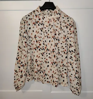 Elegante blusa de manga larga con un delicado estampado. - Cuello camisero. - Puños fruncidos. - Cierre de botones. Sin uso porque desde que la compre me quedaba grande