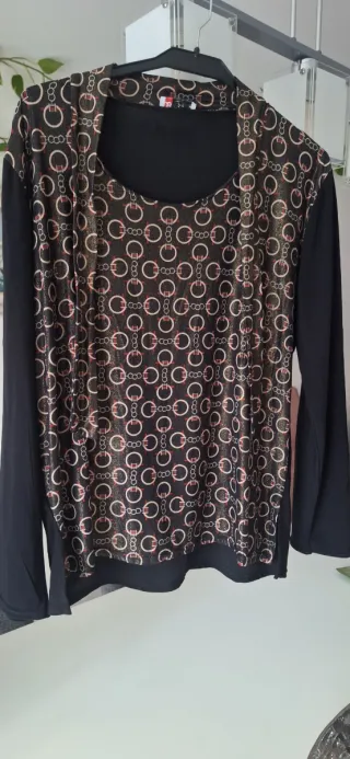 Blusa con un bonito estampado floral . Es una prenda nueva, ideal para añadir un toque de estilo a tu armario. - Para talla 42/44. - Diseño con flores grandes. - Mangas largas. - Bajo elástico.