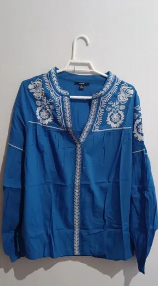 Blusa de mujer con diseño más poncho de invierno. 2 euros por cada prenda... Se hacen lotes ver mi perfil - Detalle de flores bordadas en la parte delantera. - Mangas largas acampanadas. - Bajo curvo asimétrico. - Etiqueta de marca en el lateral.