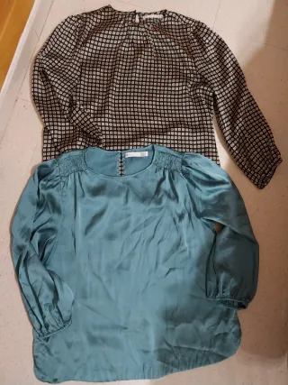 2 Blusa de mujer con un diseño estampado y un toque de color raso. Mas ropa en mi perfil hago lotes. - Manga larga tipo globo - Cuello redondo. - Estampado geométrico.