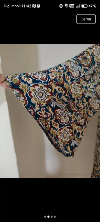 Blusa de Zara con un llamativo estampado floral. - Diseño con cuello camisero. - Manga ancha. - Cierre de botones. - Corte peplum.