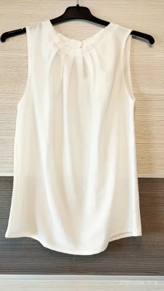 Elegante blusa de Boutique Italiana con un diseño de tablas en la parte delantera. Una prenda versátil y chic. - Diseño con tablas. - Sin mangas. - Cierre con botón en la espalda. - Tejido ligero pero no sé exactamente cuál es. #tallaS #blusas #boutiqueitaliana